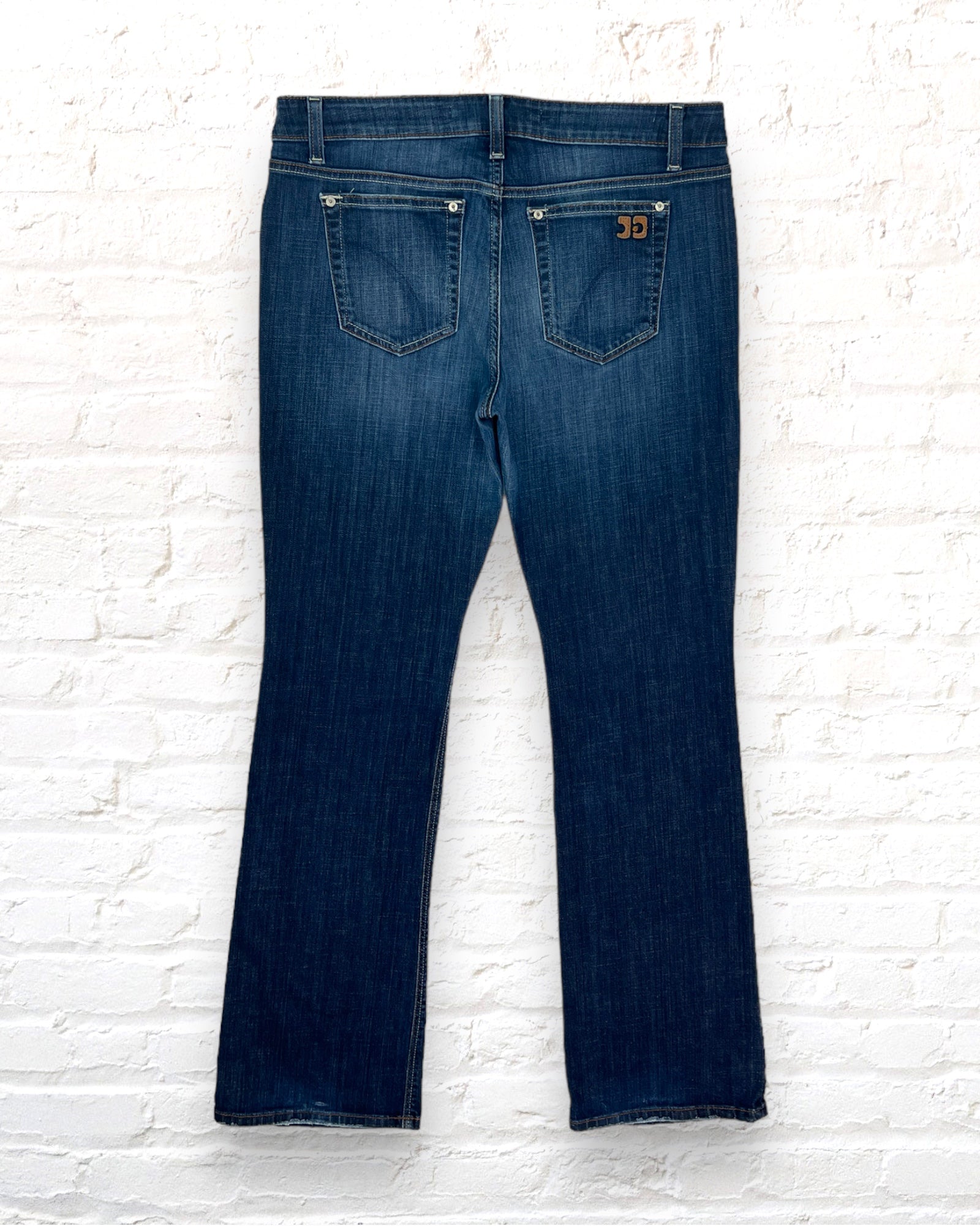 Joe's Jeans in Muse Style with whiskering on the front pockets and fading from pockets to knees. Fading on seat. Leather logo on right back pocket.