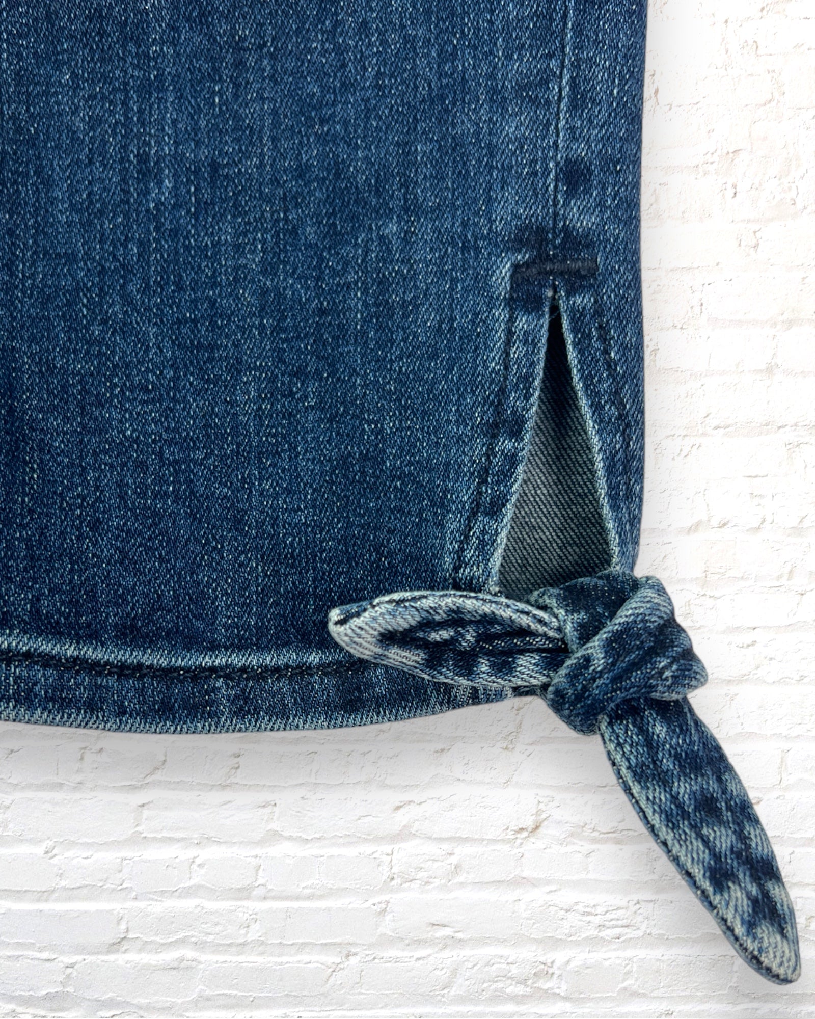 Skinny crop Rag & Bone jeans with sweet ties at the ankles. Light fading on seams of pockets and down legs.